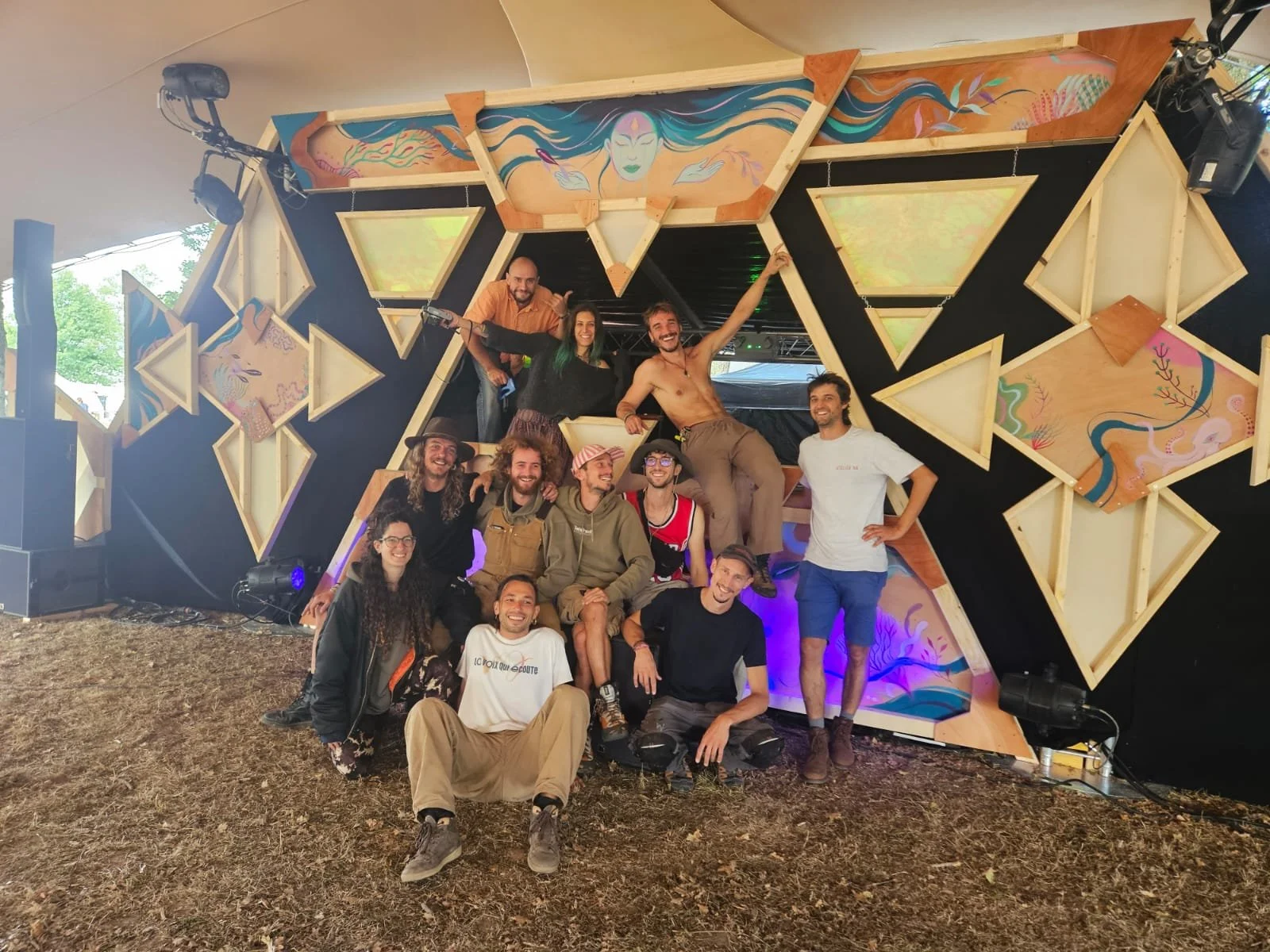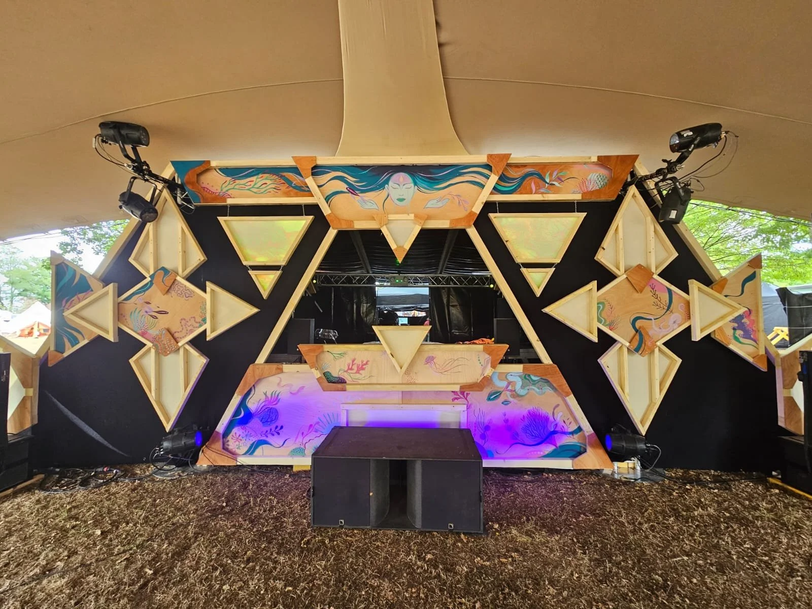 Après avoir accepté notre proposition, l’équipe du Hadra nous a également confié la scénographie de la scène Chill. En effet, après plusieurs années de cohabitation avec l’espace Healing, la Chill retrouvait enfin un espace dédié. Il fallait donc imaginer et construire une scène complète, ainsi que du mobilier adapté.