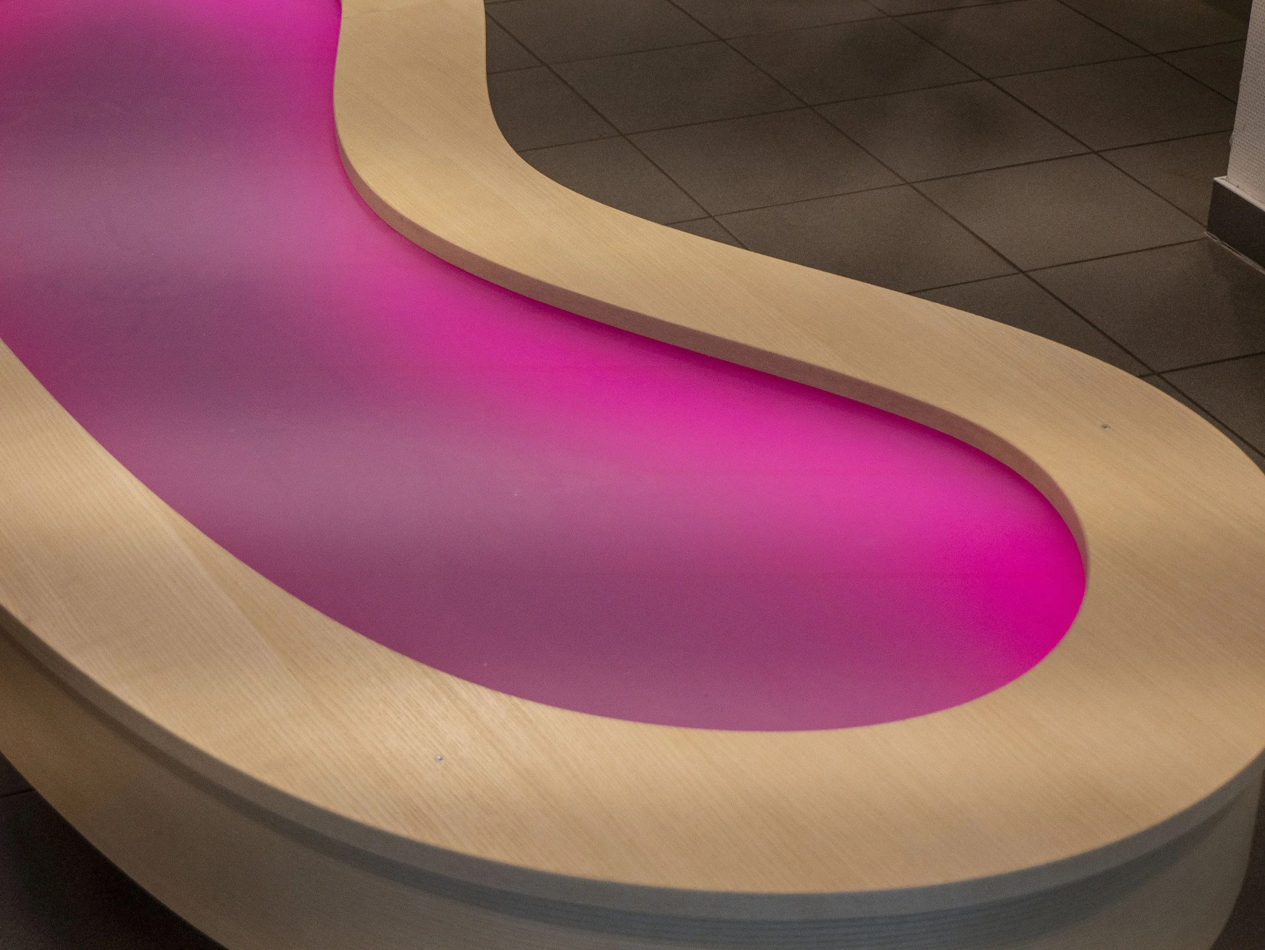 Les professionnels du jardin d’enfants et de l’EHPAD nous ont demandé d’intégrer une batterie dans les tables pour éviter les fils d’alimentation, qui pourraient gêner les usagers. Enfin, la surface rétroéclairée est en PMMA (plexiglas) de réemploi : il s’agit d’anciens garde-corps de balcons, poncés et insérés dans les tables. Cela crée une surface translucide qui diffuse les couleurs des rubans LED.