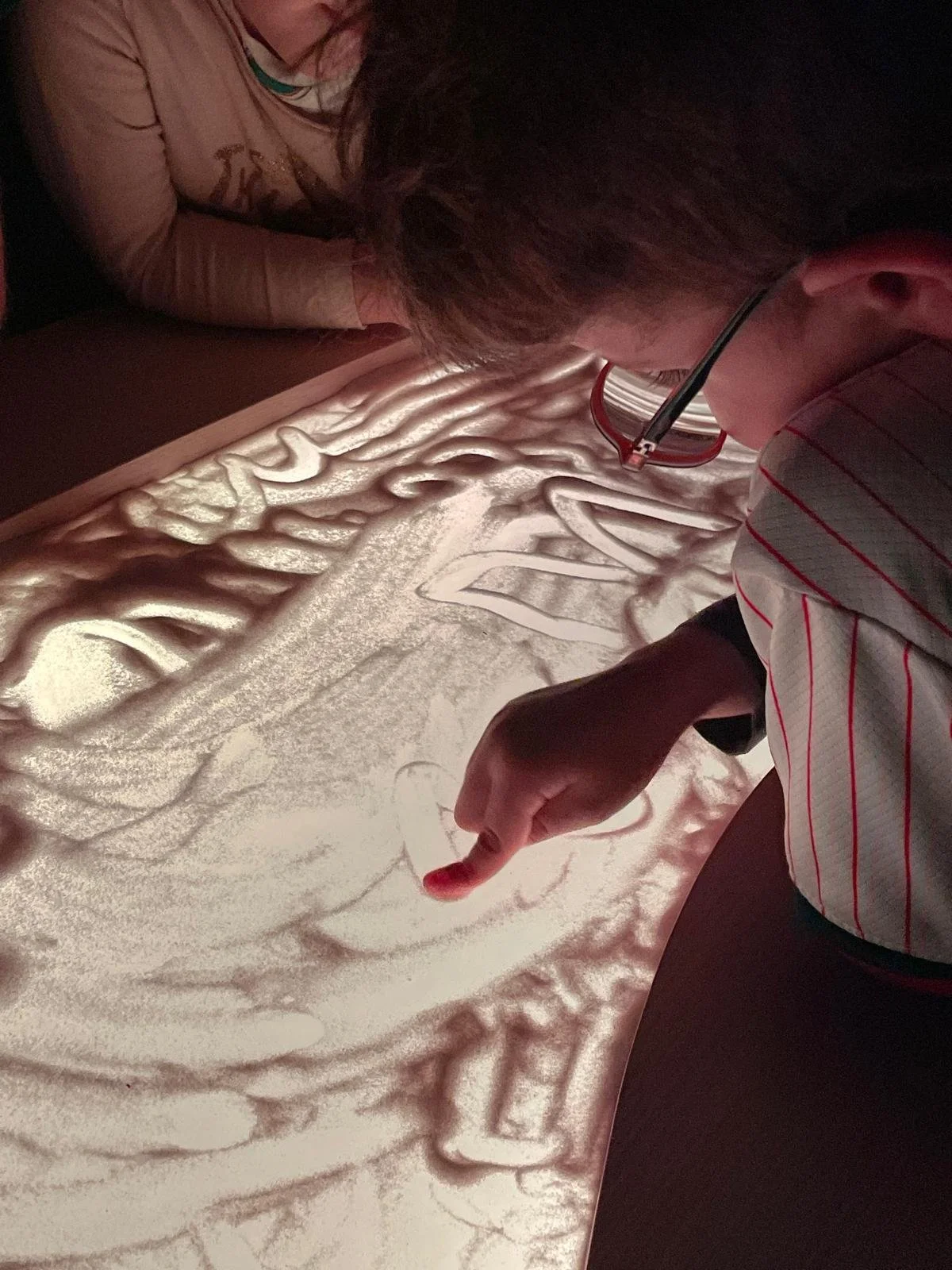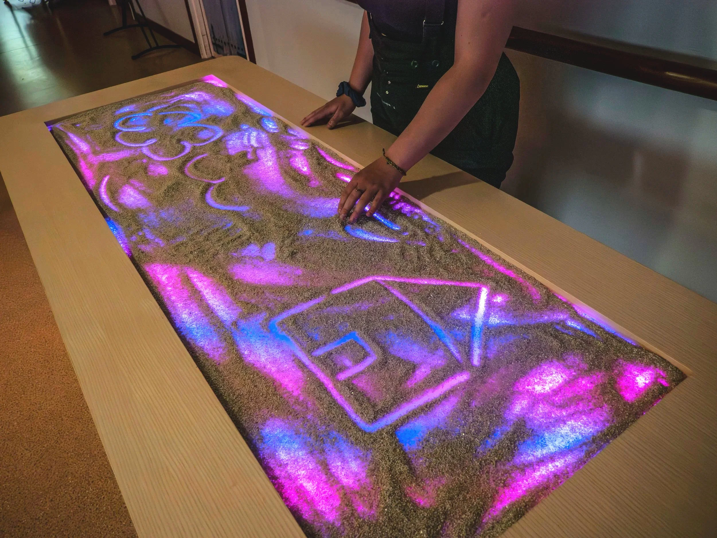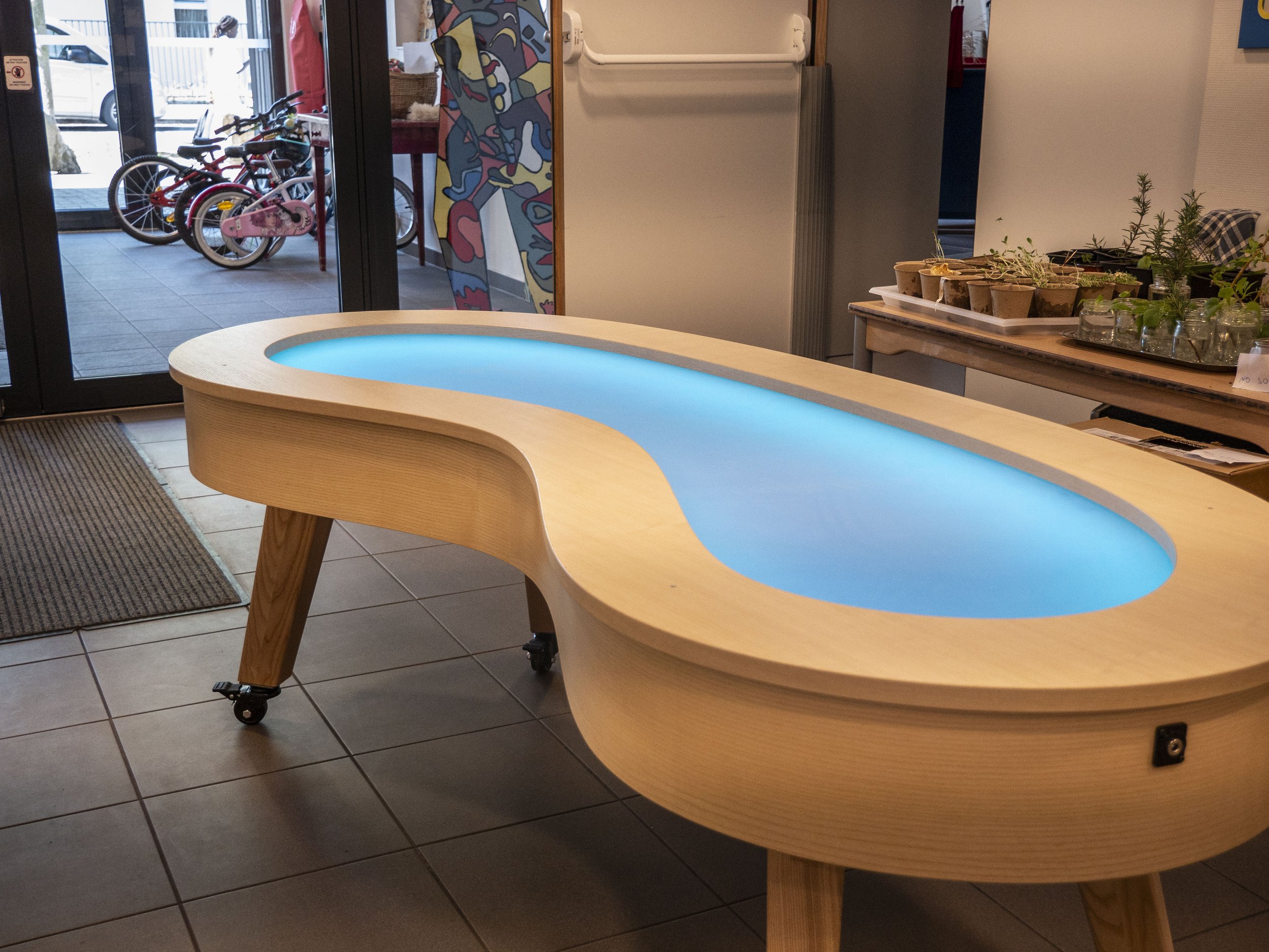 En 2024, en collaboration avec Gris Bois, nous avons remporté l’appel à projets Tango & Scan pour la réalisation de prototypes de tables lumineuses destinées aux EHPAD et aux jardins d’enfants. Le concept repose sur des tables rétroéclairées sur lesquelles on dépose du sable. En le déplaçant avec les mains ou à l’aide d’ustensiles, il devient possible de dessiner en laissant passer la lumière par endroits.